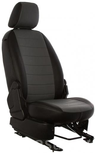 Чехлы автомобильные для Toyota Land Cruiser Prado 120 (черно-светло-серые, экокожа)