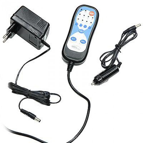• Массажный коврик подключается к автомобильной сети через гнездо прикуривателя и к бытовой электросети с помощью сетевого адаптера и управляется пультом дистанционного управления.