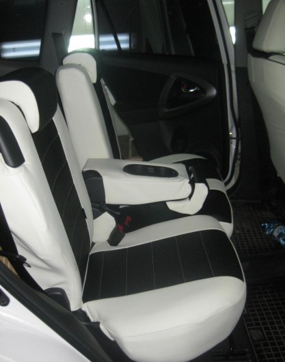 Вопросы и отзывы про Чехлы автомобильные для Toyota RAV-4 II 94-00 г.в. (бело-черные, экокожа)