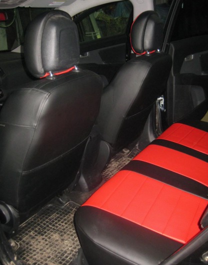 Вопросы и отзывы про Чехлы автомобильные для Kia Sportage III от 10 г.в. (черно-красные, экокожа)