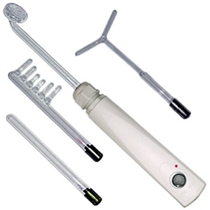 • прямой электрод предназначен для лечения внутриполостных заболеваний (наружного слухового прохода, полости носа и др.) и точечного воздействия на небольшие участки кожи (лечение небольших ранок, язвочек, угрей и т.д.);