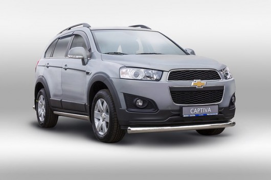 Защита переднего бампера для Chevrolet Captiva от 2014 г.в. – это труба на бампер из нержавеющей стали диаметром 76 мм.