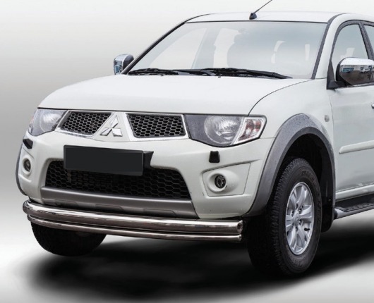 Защита переднего бампера для Mitsubishi L200 от 2014 г.в. – это двойная труба на бампер из нержавеющей стали диаметром 76/42 мм.