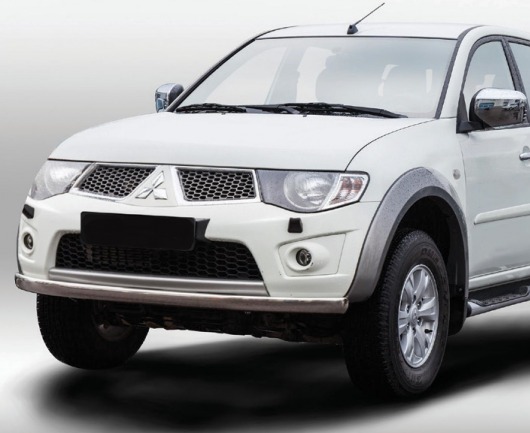 Труба на бампер Mitsubishi L200 защищает передний бампер автомобиля от различных механических повреждений при мелких ДТП и неудачных парковках, а также незаменима при езде по бездорожью. А кроме этого, труба на передний бампер Митсубиси Л200 смотрится очень стильно и эффектно.