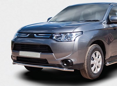 Труба на бампер Mitsubishi Outlander XL защищает передний бампер автомобиля от различных механических повреждений при мелких ДТП и неудачных парковках, а также незаменима при езде по бездорожью. А кроме этого, труба на передний бампер Митсубиси Аутлэндер XL смотрится очень стильно и эффектно.
