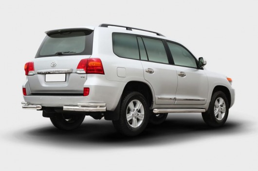 Защита заднего бампера для Toyota Land Cruiser 200 – это двойные защитные уголки на бампер из нержавеющей стали диаметром 76/42 мм.