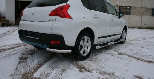 Защита заднего бампера для Peugeot 3008 – это защитные уголки на бампер из нержавеющей стали диаметром 60 мм.