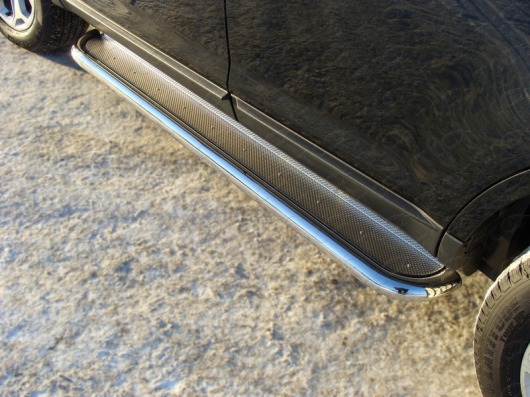 Боковые пороги-подножки сделаны специально для автомобилей Ford Edge от 2014г.в. поэтому устанавливаются достаточно просто и без повреждений корпуса. Кроме этого, стальные пороги с листом для Форд Эдж смотрятся очень стильно и эффектно. Они добавят вашему авто еще больше солидности и внушительности.
