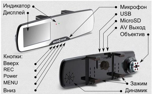 • Видеорегистратор крепится на штатное зеркало, что позволяет не нарушать обзор через лобовое стекло и не загромождать приборную панель.  А встроенный в зеркало монитор не отвлекает вашего внимания.