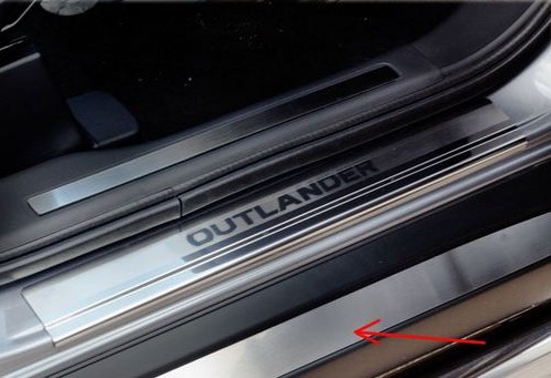 Накладки на пороги дверей Mitsubishi Outlander XL не только обеспечивают защиту верхней и боковой поверхности наружного порога, но и отлично вписываются в интерьер автомобиля, подчеркивая его стиль и индивидуальность. C монтажом проблем не возникнет: установка накладок на наружный порог для Mitsubishi Outlander XL производится на штатные места с помощью скотча 3M.