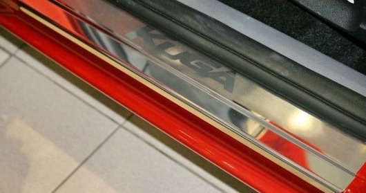 Накладки на боковые пороги Форд Куга изготовлены из полированной нержавеющей стали. Она обеспечивает сохранность накладок от коррозии на весь период эксплуатации.