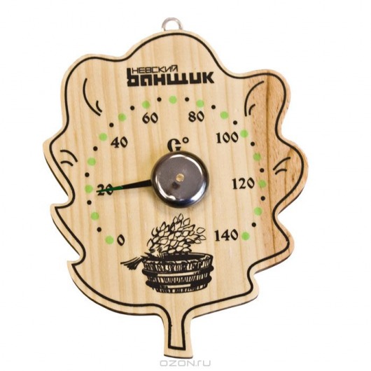 Термометр для бани и сауны «Лист» выполнен в оригинальном дизайне, в форме дубового листка, словно слетевшего с ароматного дубового веника. Термометр «Лист» не только покажет вам, не зашкаливает ли температура в парной или же наоборот, стоит «поддать пару». Но и гармонично впишется в интерьер классической деревянной парной или сауны.