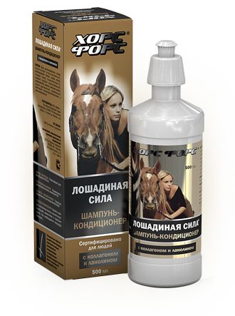 Шампунь-кондиционер «Лошадиная сила» предназначен для ухода за всеми типами волос. Уникальная формула шампуня тщательно очищает, при этом кондиционирует и полирует волосы. Шампунь придает волосам блеск, ухоженный струящийся вид. В состав шампуня входит гидролизат коллагена, который восстанавливает структуру волос по всей длине, разглаживает керамидные пластины, увлажняет и защищает природную оболочку волосяного стержня. Ланолин защищает кожу от пересушивания при частом мытье, сохраняет естественную защиту. Шампунь легко смывается и имеет приятный свежий запах.
