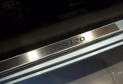 Внутренняя накладка на порог Hyundai I 20 — это аксессуар автомобильного тюнинга, который защищает внутренний порог от механических повреждений при посадке и высадке из машины. Декоративные накладки с рисунком на внутренние пороги предназначены для автомобилей Hyundai I 20 3D от 2009 г.в.