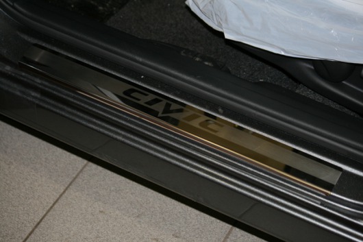 Внутренняя накладка на порог Honda Civic 4D  — это аксессуар автомобильного тюнинга, который защищает внутренний порог от механических повреждений при посадке и высадке из машины. Декоративные накладки с рисунком на внутренние пороги предназначены для автомобилей Honda Civic 4D от 2006 г.в.