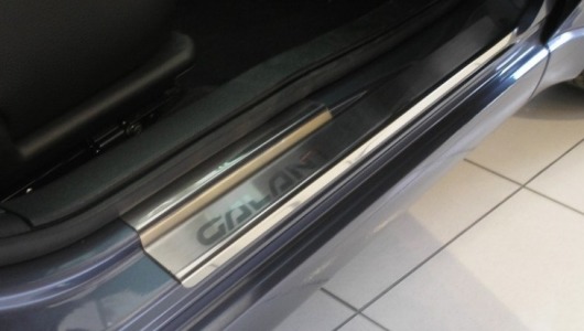 Внутренняя накладка на порог Misubishi Galant — это аксессуар автомобильного тюнинга, который защищает внутренний порог от механических повреждений при посадке и высадке из машины. Декоративные накладки с рисунком на внутренние пороги предназначены для автомобилей  Misubishi Galantот 2004 г.в.