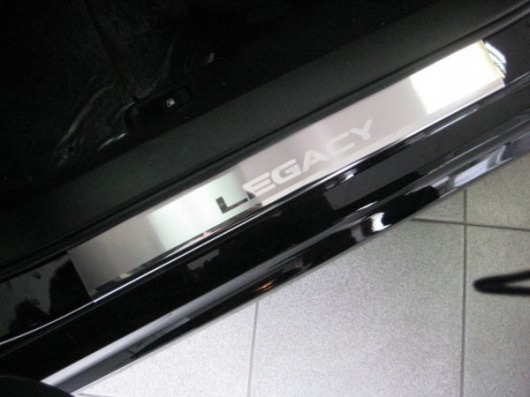 Внутренняя накладка на порог Subaru Legacy  — это аксессуар автомобильного тюнинга, который защищает внутренний порог от механических повреждений при посадке и высадке из машины. Декоративные накладки с рисунком на внутренние пороги предназначены для автомобилей Subaru Legacy от 2009 г.в.