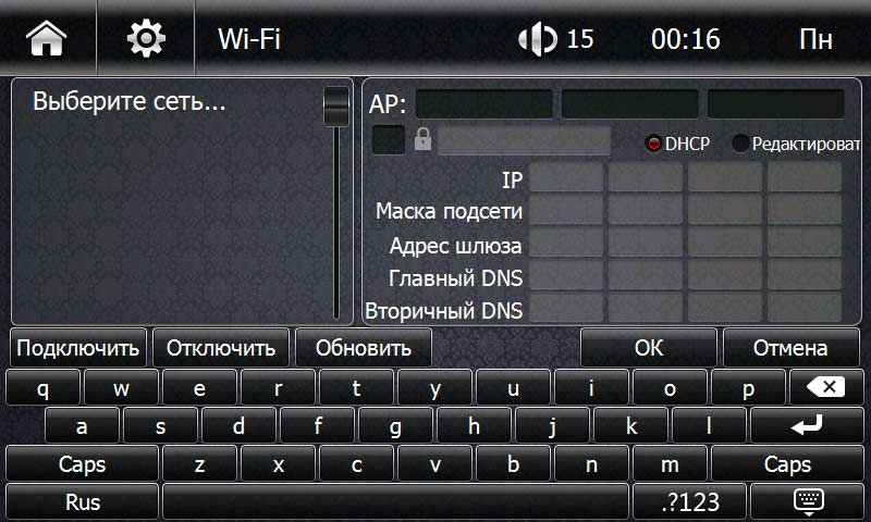 Возможность подключения интернета, камер заднего и переднего вида, парктроников и дополнительных мониторов