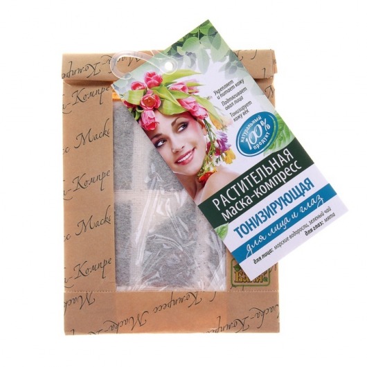 Растительная маска-компресс для лица и глаз полностью покрывает лицо. Для дыхания предусмотрена специальная прорезь. Состав: для лица - зеленый чай, морские водоросли; для глаз - мята. Отборные травы высшего качества, экологически чистый и натуральный продукт.