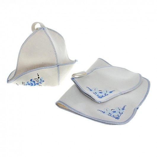 В этот набор для бани входит шапка, рукавичка и коврик, изготовленные из фетра. Они являются спутниками каждого любителя побаловать свое тело горячим паром.