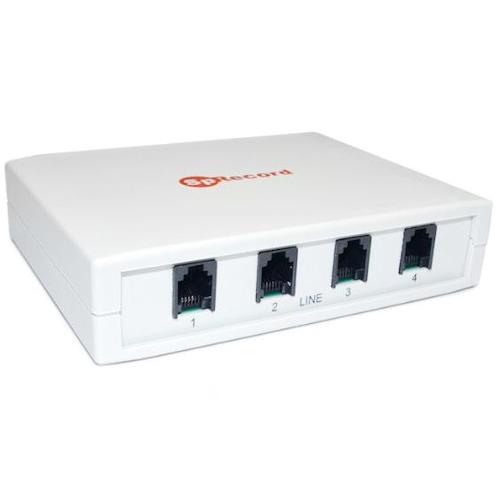 Для соединения с линией используются типовые телефонные разъемы. Пороги напряжения можно отрегулировать, благодаря чему адаптер совместим со стандартными и низковольтными АТС. К одному системному блоку возможно подключение до 16-ти адаптеров SpyRecord. Таким образом, с данным адаптером вы сможете вести запись разговоров с 64 телефонных линий.