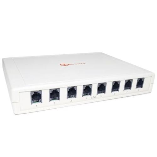 Для соединения с линией используются типовые телефонные разъемы. Пороги напряжения можно отрегулировать, благодаря чему адаптер совместим со стандартными и низковольтными АТС. К одному системному блоку возможно подключение до 16-ти адаптеров SpyRecord. Таким образом, с данным адаптером вы сможете вести запись разговоров со 128 телефонных линий.