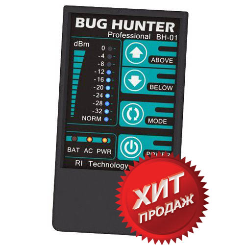 Обнаружитель шпионского оборудования профессионального класса BugHunter Professional BH-01 эффективно обнаруживает как аналоговые, так и цифровые жучки (любые радиомикрофоны, беспроводные камеры, мобильные телефоны и другие устройства). Детектор жучков работает в широком диапазоне частот — от 50 до 3000 МГц и имеет стабильно высокую чувствительность. Может работать в скрытом режиме при использовании наушников.
