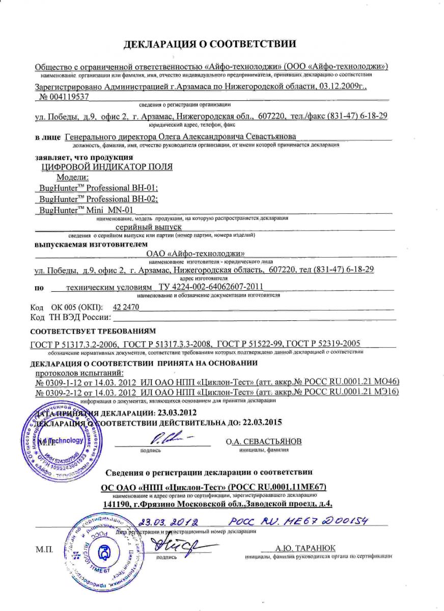 Детектор жучков BugHunter Professional BH-01