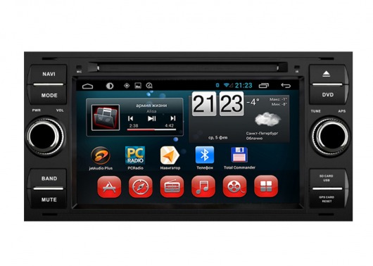 Штатное головное мультимедийное устройство позволяет прослушивать аудиофайлы различных форматов, просматривать видео (в том числе в HD-формате) и фотографии как с внутренней памяти устройства (8 Гб), так и с внешних носителей и SD карт памяти. Вы также можете слушать аналоговое или интернет-радио или смотреть видео онлайн. Или подключить цифровой ТВ-тюнер, чтобы смотреть цифровые каналы прямо на экране устройства. А еще у вас есть возможность подключить DVD-привод и смотреть фильмы и управлять DVD-меню прямо с сенсорного экрана магнитолы.