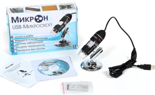 Микрон-400 — модель со встроенной цифровой камерой и матрицей 2 Мп. Возможность 400-кратного увеличения и фокусировки картинки обеспечивают качественное и детальное изображение. Металлический штатив с широкой опорной частью гарантирует устойчивость, которая важна при исследованиях, и облегчит наведение прибора на другие исследуемые объекты. А благодаря специальному программному обеспечению (в комплекте) вы сможете в любой момент сделать фото или видеозапись изучаемого объекта.