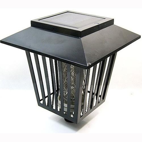 Уничтожитель комаров и кровососущих насекомых Садовый приманивает их светом УФ-ламп и убивает разрядом тока. Кроме уничтожения насекомых, может выполнять функцию садового фонаря, в форме которого он выполнен. Работает полностью автономно от 2-х встроенных аккумуляторов, заряжающихся от солнечной панели на верхней стороне уничтожителя.