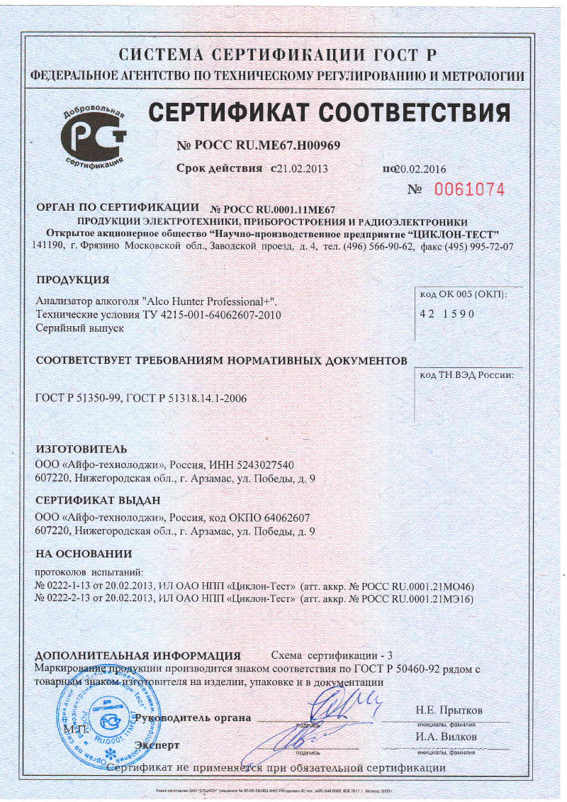 Вопросы и отзывы про Алкотестер AlcoHunter Professional