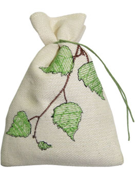Льняной мешочек с березовыми листьями предназначен для запаривания в бане или ванной. Душистый травяной сбор упакован в специальный мешочек с вышивкой. После использования аксессуар можно высушить и повесить в доме или бане на удачу.