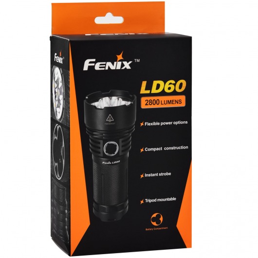 Fenix LD60 – мощный светодиодный фонарь, который можно применять как устройство бытового освещения, туристический или поисковый фонарь. Модель компактная и удобная в использовании, управляется всего одной кнопкой. Прочный металлический корпус защищает фонарь от влаги и механических повреждений.