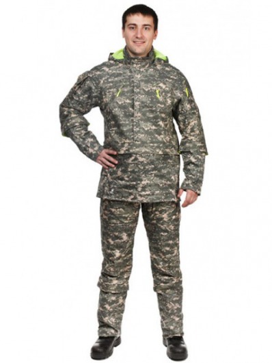 4 кармана на куртке: 2 нагрудных скошенных на молнии, 1 прорезной на молнии на левом рукаве и 1 объемный с клапаном на правом рукаве для телефона/рации; 2 многофункциональных накладных кармана на брюках.