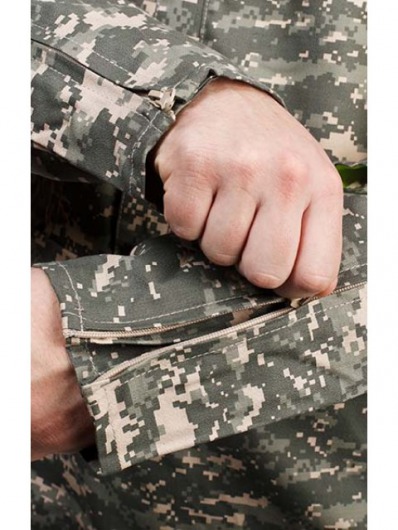 Рукава и брюки снизу с внутренними манжетами, манжеты брюк заправляются в обувь.