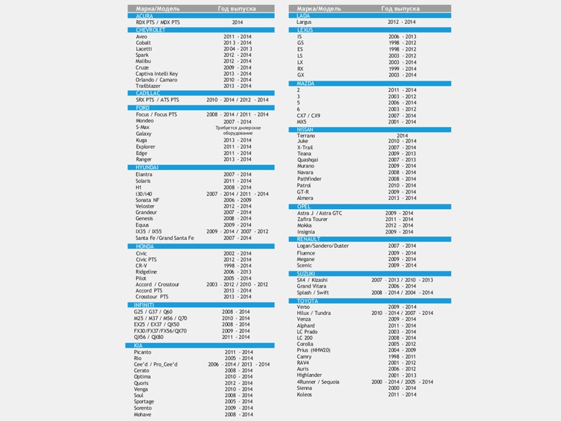 Обходчик поддерживает большинство популярных и востребованных брендов автомобилей.