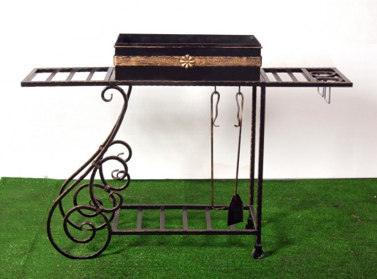 И это не единственные преимущества дачного кованого мангала Рейкьявик. Несмотря на изящность и компактность, его конструкция отличается особой прочностью. Стойка усилена элементами ручной ковки, а ящик мангала изготовлен из жаростойкой стали толщиной 3 мм, которая выдерживает высокие температурные нагрузки в течение долгого времени и не деформируется. Для дополнительной прочности жаровня перетянута стальным прутом 6 мм и полосой 40х4 мм. По бокам от жаровни располагаются 2 металлических столика для посуды.