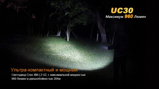 Ручной фонарь Fenix UC30 оснащен диодом модели Cree XM-L2 (U2) в состоянии предложить яркость света до 960 люмен. Этот компактный фонарь подойдет для решения ежедневных задач, использования на даче, во время отдыха на природе или серьезного туристического похода.