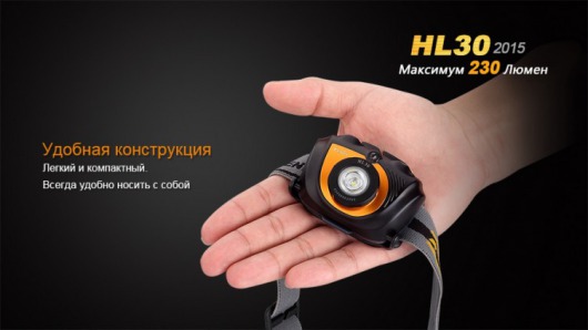 Налобный фонарь Fenix HL30 2015 светит с яркостью до 230 люмен и работает на базе двух элементов питания формата АА. Этот фонарь вполне может работать под дождем и не боится грязи, а потому он станет хорошим помощником в туристических походах, выездах на рыбалку или иного вида активного отдыха на природе.
