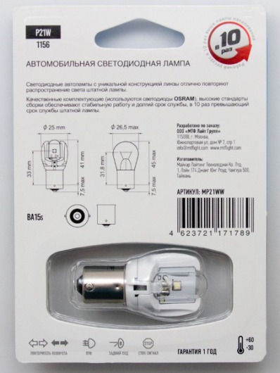 MTF-Light P21W - это современная светодиодная лампа от популярного бренда.