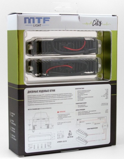 Прибор оборудован  функцией автоматического включения, что позволяет активировать освещение при повороте ключа в замке зажигания. Также данное устройство оснащено функцией автоматического отключения при включении ближнего света. Огни MTF Light  City обладают оригинальным дизайном и улучшают внешний вид автомобиля. Модель полностью соответствуют ГОСТ.