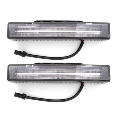 Стандарт установки - R87. Согласно ему LED-элементы должны занимать площадь от 25 до 200 кв.см и излучать свет силой от 400 до 800 кд. Во-вторых, ДХО должны быть установлены не ниже 250 и не выше 1500 мм. Минимальное расстояние между парой огней 600 мм, а от края не дальше 400 мм.