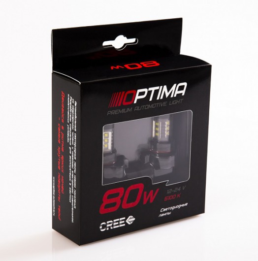 Светодиодные лампы Optima Premium HB4 (9006) Cree 9-32V 80W 5100K – это лампы с увеличенной светоотдачей. Такие показатели достигаются благодаря использованию современных технологий CREE. Лампы Optima работают эффективнее, характеризуются более мощным световым потоком.