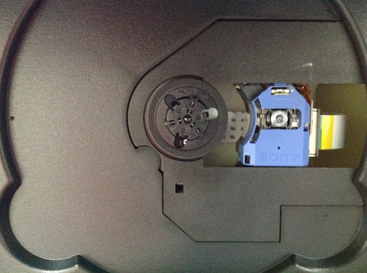 • Поднимите дисплей нажатием кнопки и вставьте диск