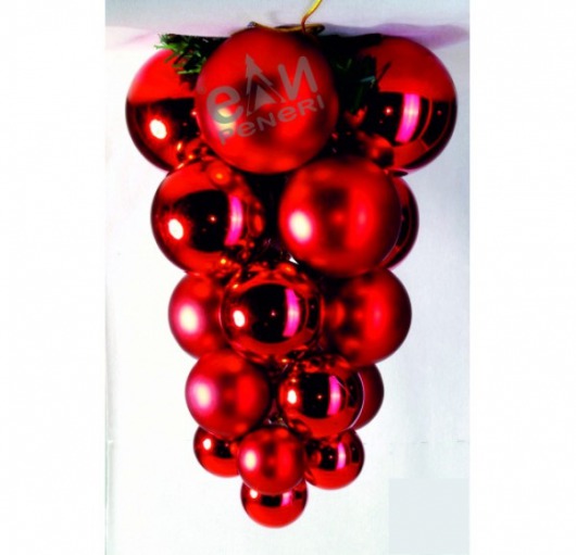 Гроздь из шаров красного цвета будет очень выгодно смотреться во время праздничных дней. Вы можете разместить ее на новогодней елке или развесить по дому как элемент интерьера.