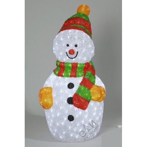 Светодиодная акриловая фигура снеговика PeneriLights размерами 46x43,5x87 см несомненно станет оригинальным новогодним украшением и удивит ваших гостей. Новогодняя световая фигура работает от сети. Ее каркас подсвечивается 450 LED-светодиодами белого цвета — выглядит такой светящийся акриловый снеговик по-настоящему сказочно. Вы можете поставить эту LED фигуру дома или на улице — в любом случае она обязательно обратит на себя внимание окружающих, особенно детей.