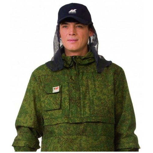 Надевается на капюшон защитного костюма или на головной убор. Наголовная противомоскитная сетка состоит из налобника и пелерины. По верхнему краю сетка стягивается тесьмой эластичной, поэтому она универсальна для всех размеров обхвата головы. Сетка изготовлена из трикотажного хлопчатобумажного волокна с антимоскитной пропиткой.
