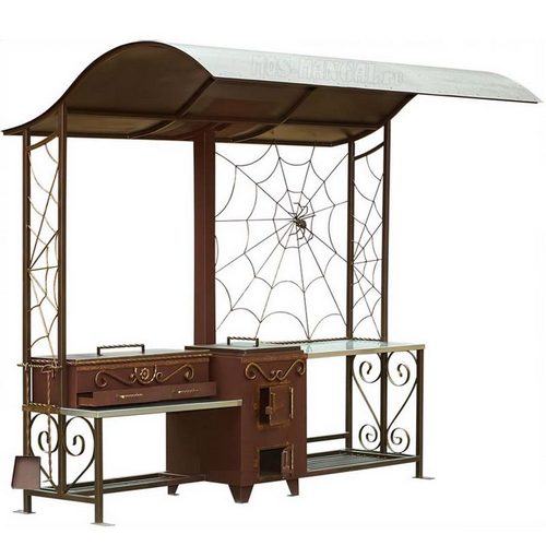 • Большой металлический навес с вытяжкой защищает мангал от осадков, так что никакой дождь не помешает вам приготовить вкуснейший шашлык для родных и друзей.
