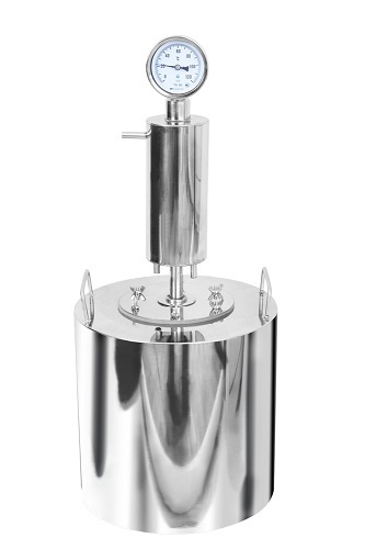 Комплектация: Перегонная ёмкость, встроенный термометр, холодильник, крышка-фланец, 6 металлических барашков, силиконовые прокладки под крышку фланец и холодильник